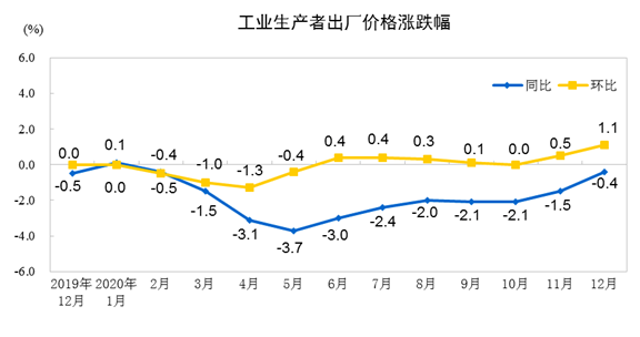 2020年12月份工業(yè)生產(chǎn)者出廠價(jià)格同比下降0.4%